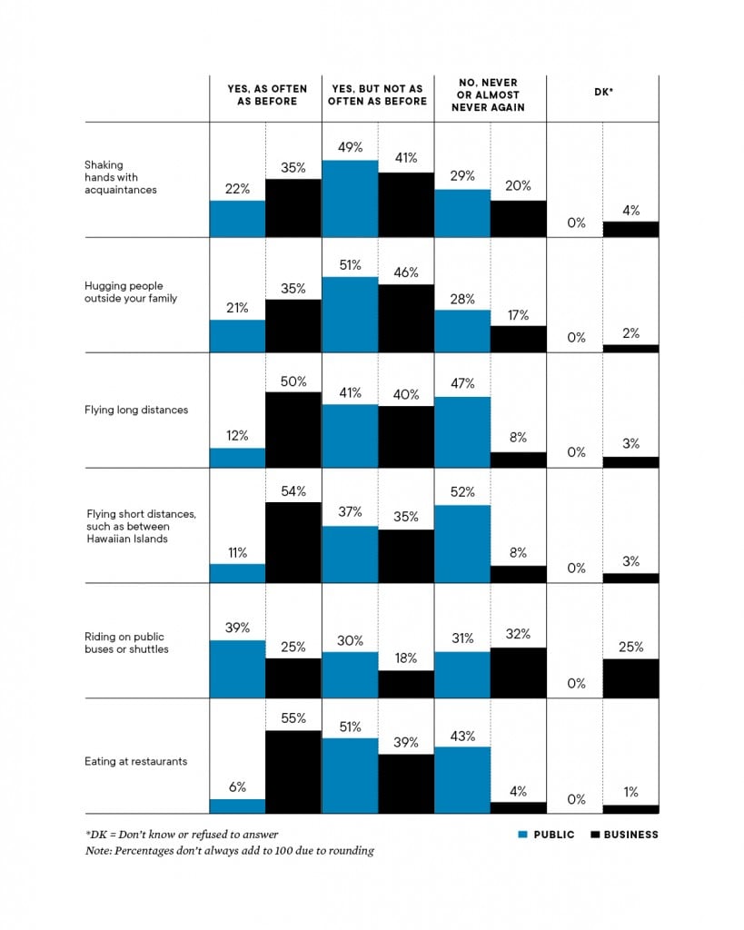 Respondents in both surveys were asked how their future behavior would be affected once a vaccine for COVID-19 has become widely available.