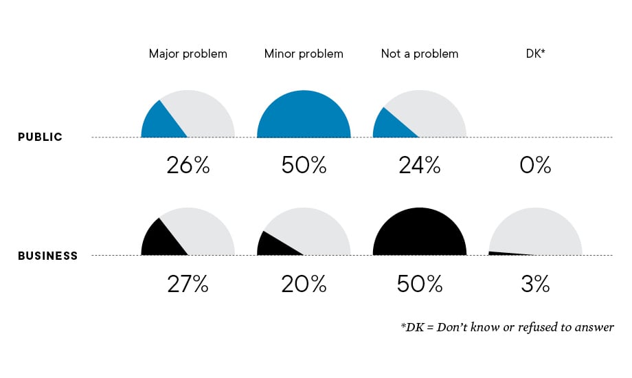 Among the general public, there were significant differences by age: For example, 36% of adults under the age of 35 view racism as a major problem in Hawai‘i; just 14% of seniors share that belief.