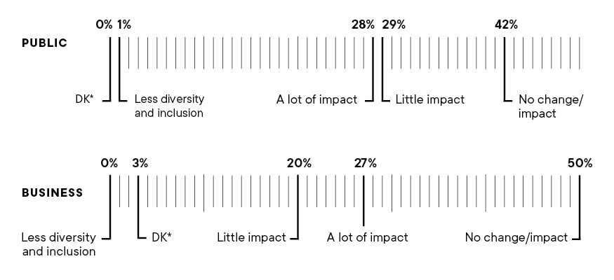 Those respondents whose employers currently have diversity and inclusion policies were asked if they think it has had any noticeable impact on their workplaces over the last two years.