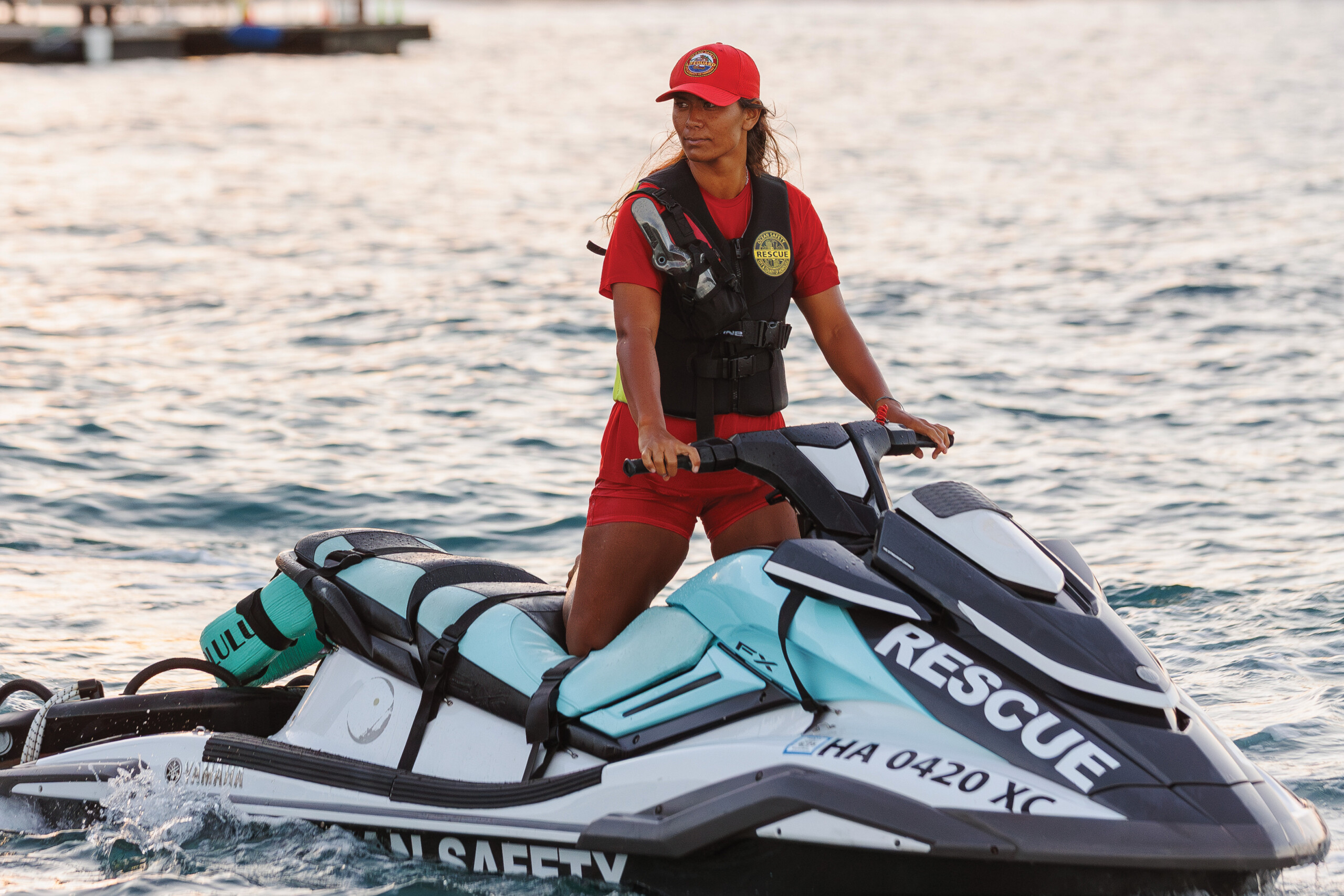 The two positions work hand-in-hand to protect people both close to shore and further out to sea: “The jet ski is considered the tip of the spear of Ocean Safety,” she says. “When you’re on the ski, you’re moving and assessing situations quickly but thoroughly to help whoever’s out a mile away or several miles away from the tower.”