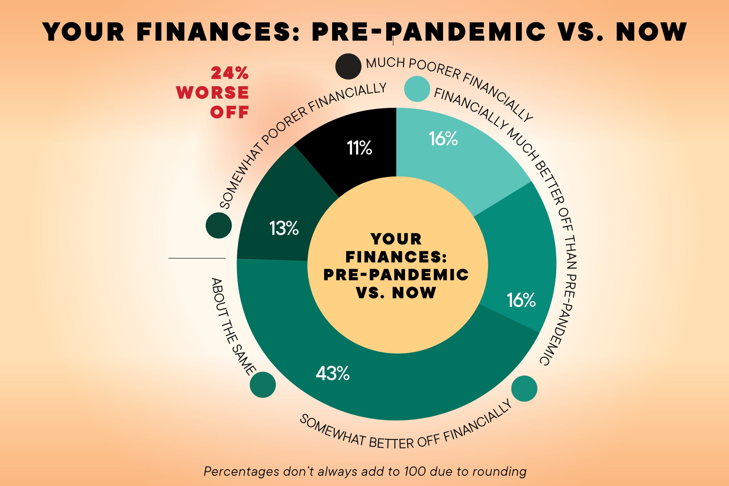 The good news: 83% of those surveyed say their lives overall are either “Great” or “Good.” The bad news: 24% say they are worse off financially than before the pandemic.