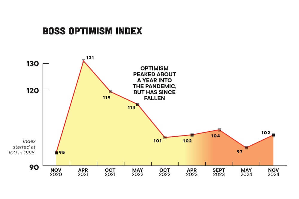 Among BOSS survey findings, leaders report upticks in optimism but rate the overall state of local businesses less favorably than the general public does.
