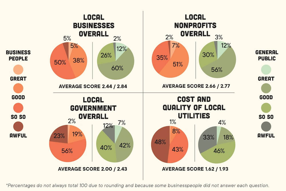 That’s interesting: Business People surveyed rate local businesses overall more poorly than the general public.