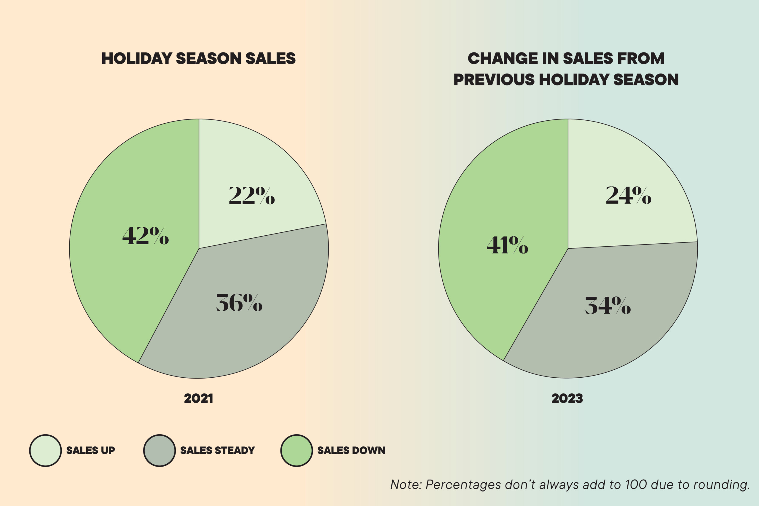 For many retailers, the most important time of the year is the holiday season, from around Thanksgiving to New Year’s Day. So every time we survey retailers, we ask about their latest holiday season and compare it to the previous holiday season. Did sales go up, hold steady or go down?