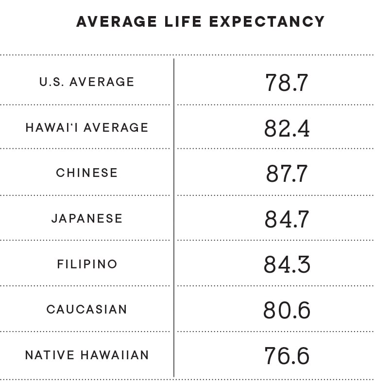 A study of life expectancy among five ethnic groups in Hawaii found that Chinese live the longest on average and Native Hawaiians the shortest. And women in Hawaii, on average, live 6.1 years longer than men.