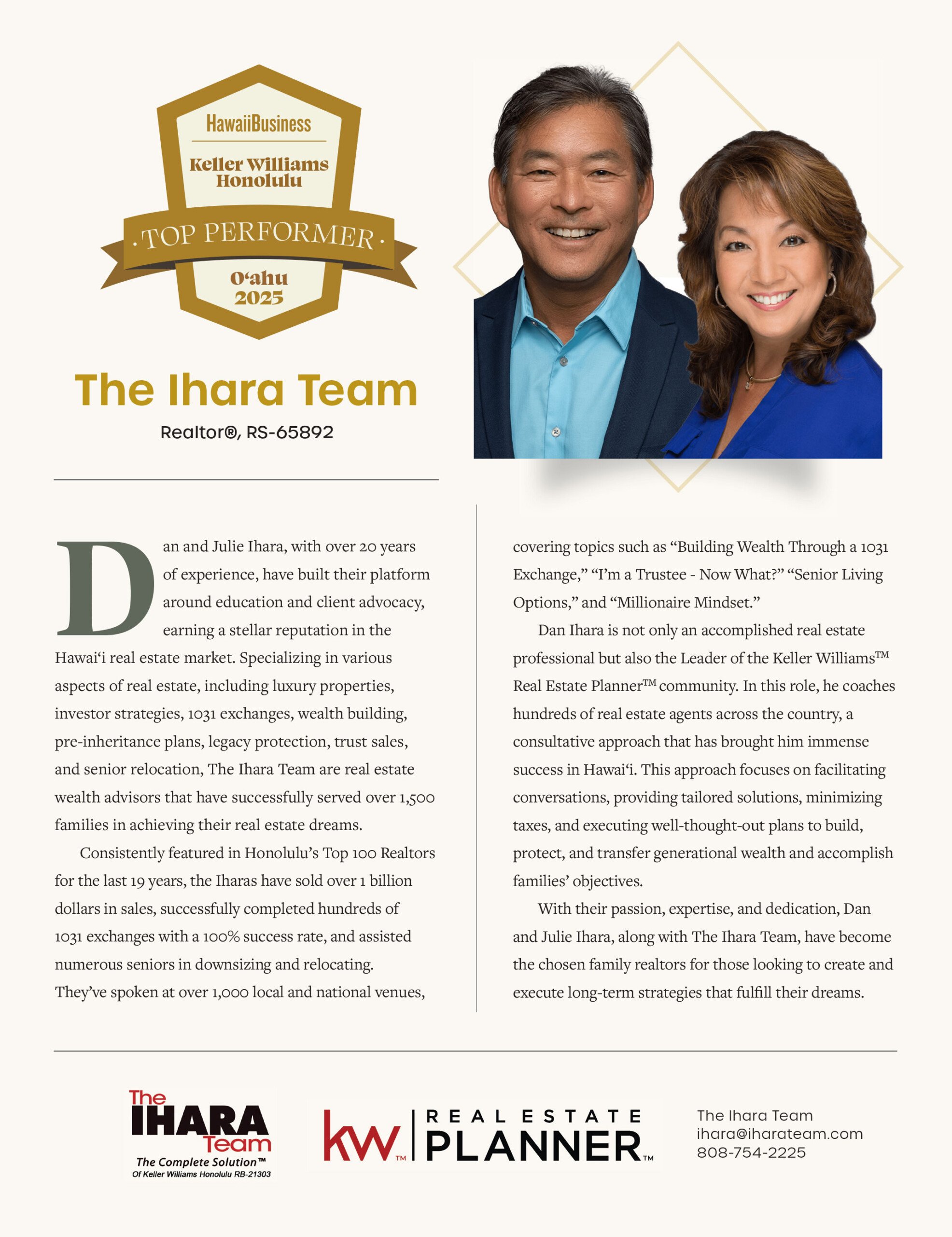 Hawai‘i Business Magazine identified the leading real estate companies and invited them to submit their Top Performers. This section profiles many of these Top Performers in real estate. Consider these agents and companies when preparing to make your next real estate transaction.