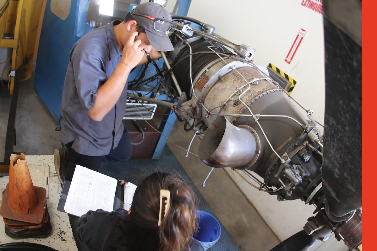 Instructor Brian Quinto drills the students on the importance of safety and attention to detail. “We’re often compared to auto mechanics. No denigration to them, but if something goes wrong with your car, you just pull over.” Signing off on repairs becomes a legal document, he explains to students, and planes aren’t cleared to take off until the mechanic says so.